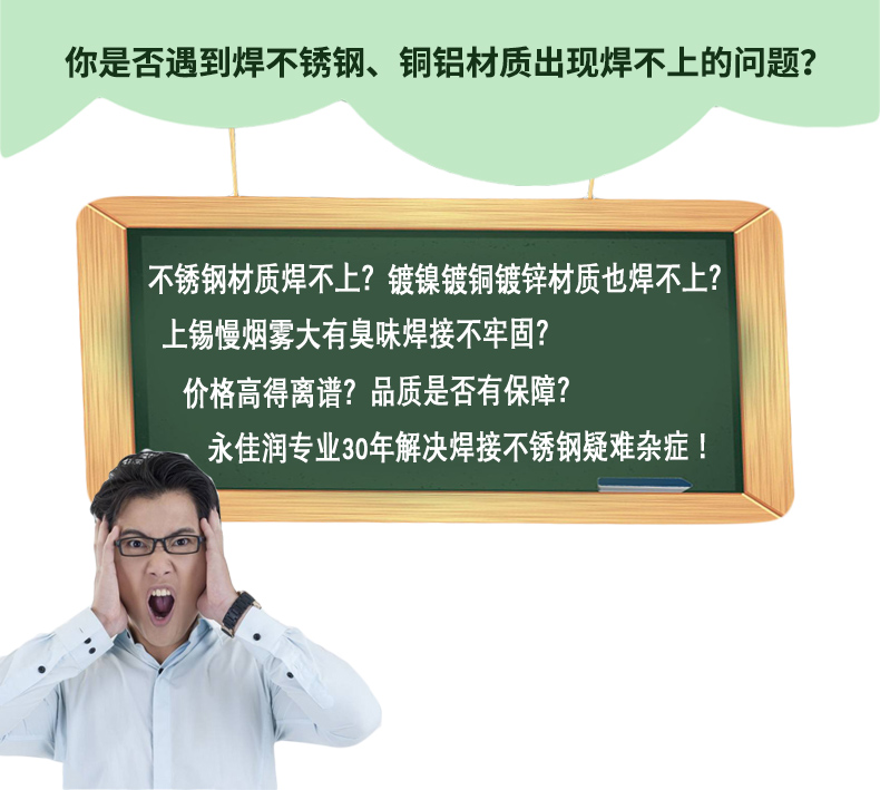 傳統不銹鋼材料的焊接常常采用氫弧焊接,對于一些不銹鋼小件,薄片,由于焊接溫度過高(1000℃以上),極易產生焊點周邊發黑現象,甚至出現菜花狀缺陷,而人在操作時又要承受一定的電弧輻射,對于一些結構較為特殊的工件,由于工件結構所限,打磨拋光等再處理工序往往比較困難,這是眾多不銹鋼制品廠家困惑的問題,永佳潤錫業結合現你焊接要求,研發了專門焊不銹鋼的錫線,此類錫線添加了獨特的焊不銹鋼專用活性劑、有效的解決了不銹鋼部位而形成的無法上錫的問題,本品可焊接不銹鋼201、不銹鋼304、不銹鋼316、或不銹制品與銅線、銅線、鋼絲、鐵鍍鎳的相互焊接、支持低溫焊接、焊后不發黑、無殘留、使用60W電烙鐵直接焊接、無需加入其它助焊劑、操作簡單、方便快捷
